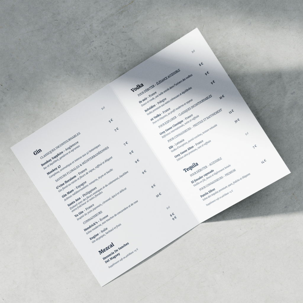 Direction artistique de la carte saisonnière de l'établissement.